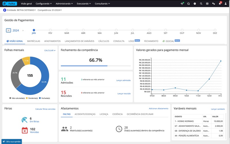 Automatizando as tarefas operacionais, ela oferece ferramentas que criam uma gestão unificada da vida profissional dos servidores, acompanhando todas as etapas e rotinas do seu histórico de trabalho. Com tecnologia e recursos de ponta é muito mais fácil cuidar daqueles que fazem tanto pelo seu município.